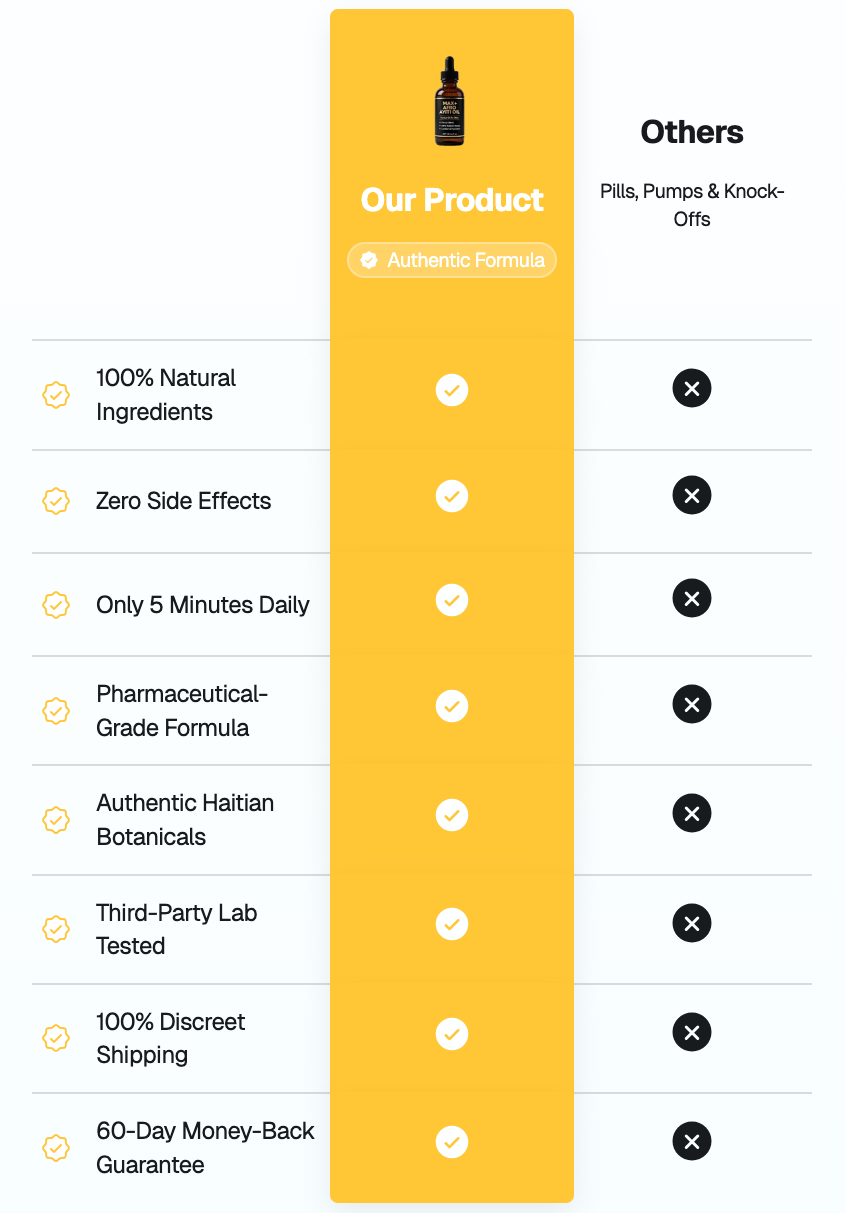 Ayiti Max Power Oil is 100% natural, applied topically, and never enters your bloodstream. Every ingredient is clearly listed. No hidden drugs. No systemic side effects. Just pure botanical extracts that work with your body, not against it.