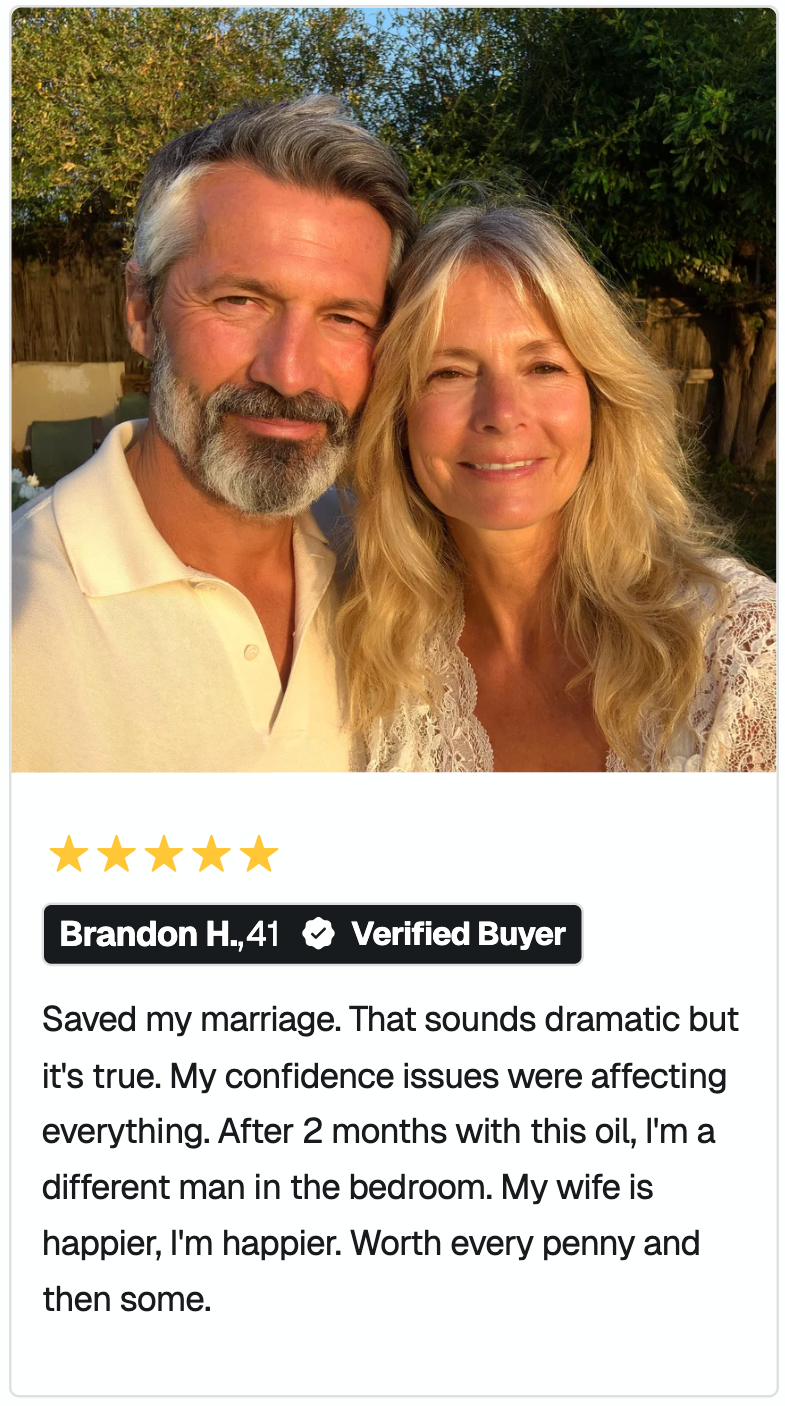 Our oil takes 5 minutes twice daily. You can use it in the morning before your shower and at night before bed. No bulky equipment. No pain. No embarrassing situations if someone walks in. Just a simple massage routine that fits seamlessly into your day.